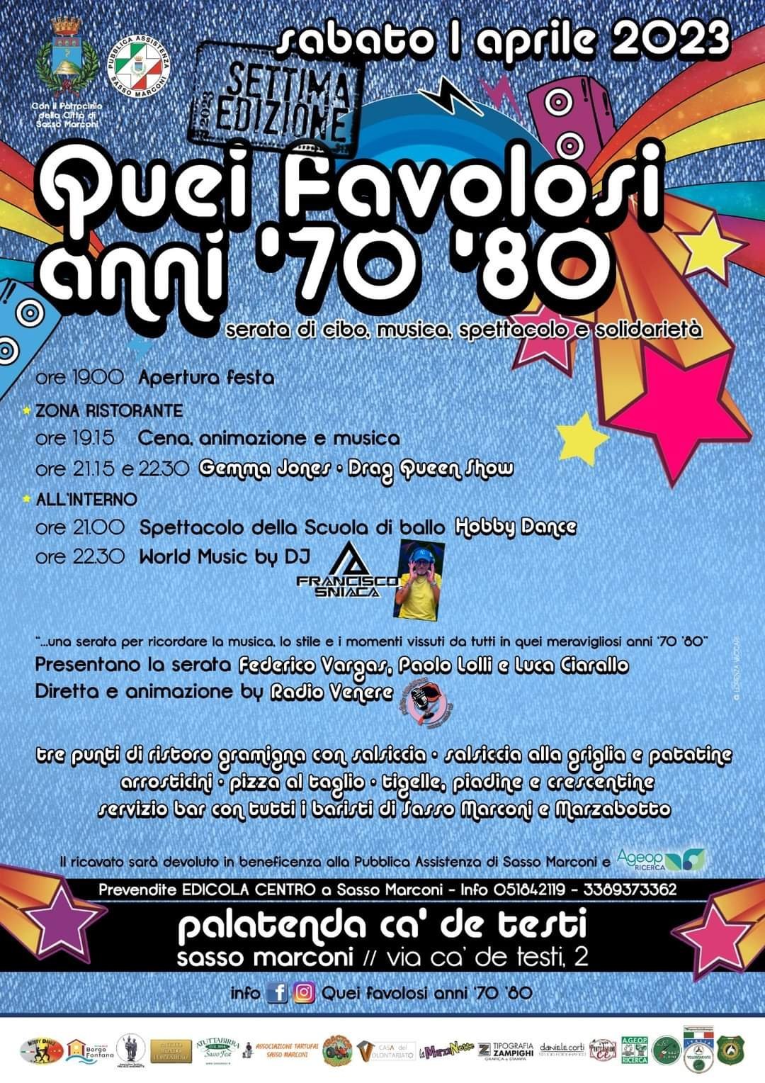 Dopo tre anni di attesa Sabato 1 Aprile 2023 torna a Sasso Marconi la tanto attesa festa dedicata alla musica degli anni ‘70 ‘80.